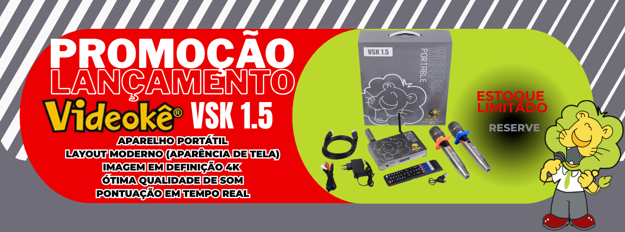 Aparelho de Videokê VSK 1.5 com 11.999 Canções + Cartão 800 Créditos