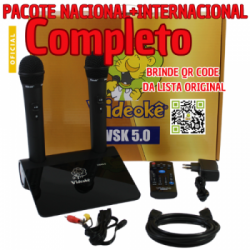 Aparelho de videokê VSK 5.0 c/12.999 músicas, já inseridas. Sendo 8096 nacionais(memória, INF, pacotes 1 ao 41), 2.896 internacionais (pacotes USA, INT01 ao INT15), 1.590 japonesas (pacotes JP1 ao JP8) e 417 evangélicas (EVAN, EVAN04, EVAN 101).