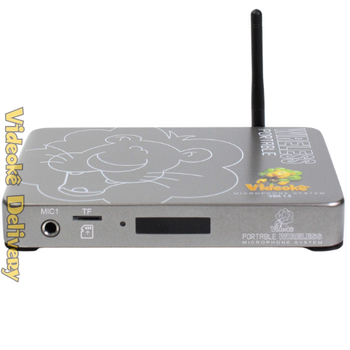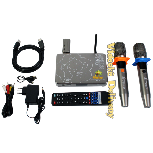 Aparelho de videokê VSK 1.5 c/11.999 músicas, já inseridas. Sendo 7.456 nacionais(memória, INF, pacotes 1 ao 37), 2.576 internacionais (pacotes USA, INT01 ao INT13), 1.550 japonesas (pacotes JP1 ao JP8C) e 417 evangélicas (EVAN, EVAN04, EVAN 101).
